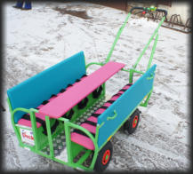 Die Gestellfarbe der Grundausführung ist rot.Andere Farben sind mit einen Aufpreis möglich. DieGestelle können praktisch in allen RAL-Farbtönenhergestellt werden. Bei den Polstern sind dunkelbraun undrot Standard, andere Farben sind mitauch mit Aufpreis möglich.