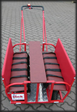 Für jedes Kind bietet unser Kinderausflugswagen einen Beckengurt.Die Gurte sind 4 cm breit und lassen sich auf beiden Seitenpassend zu jedem Kind verstellen.Außerdem ist im Fußbereich ein Bodenblech eingearbeitet,dass das Wegrutschen der Kinder verhindert und dafür sorgt,dass die Bodenwanne vor Korrosion geschützt wird.